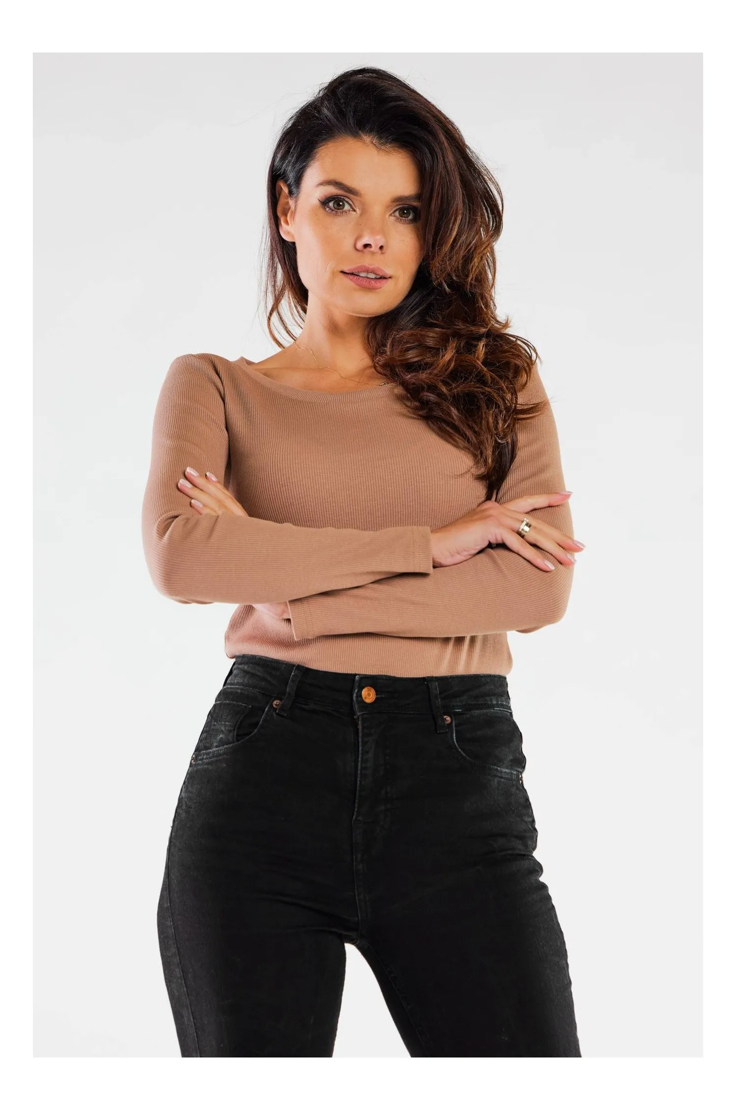 Kobieca bluzka z dekoltem w łódkę – beżowa