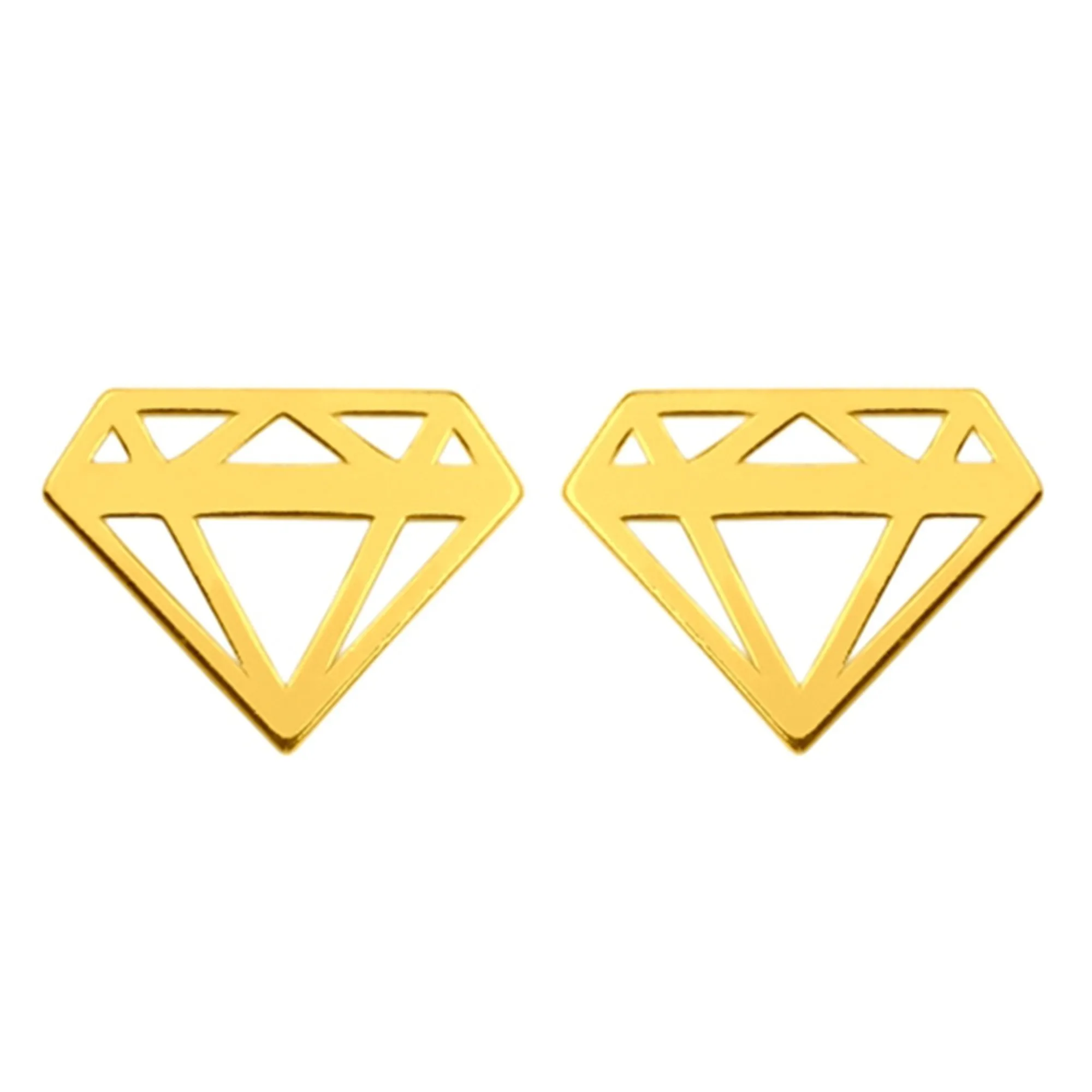 Złote kolczyki w kształcie diementów. Zapinane na sztyft. Kolczyki posiadają zapięcia (baranki). Kolczyki w całości wykonane są ze srebra 925 powlekanego 24 karatowym różowym złotem.