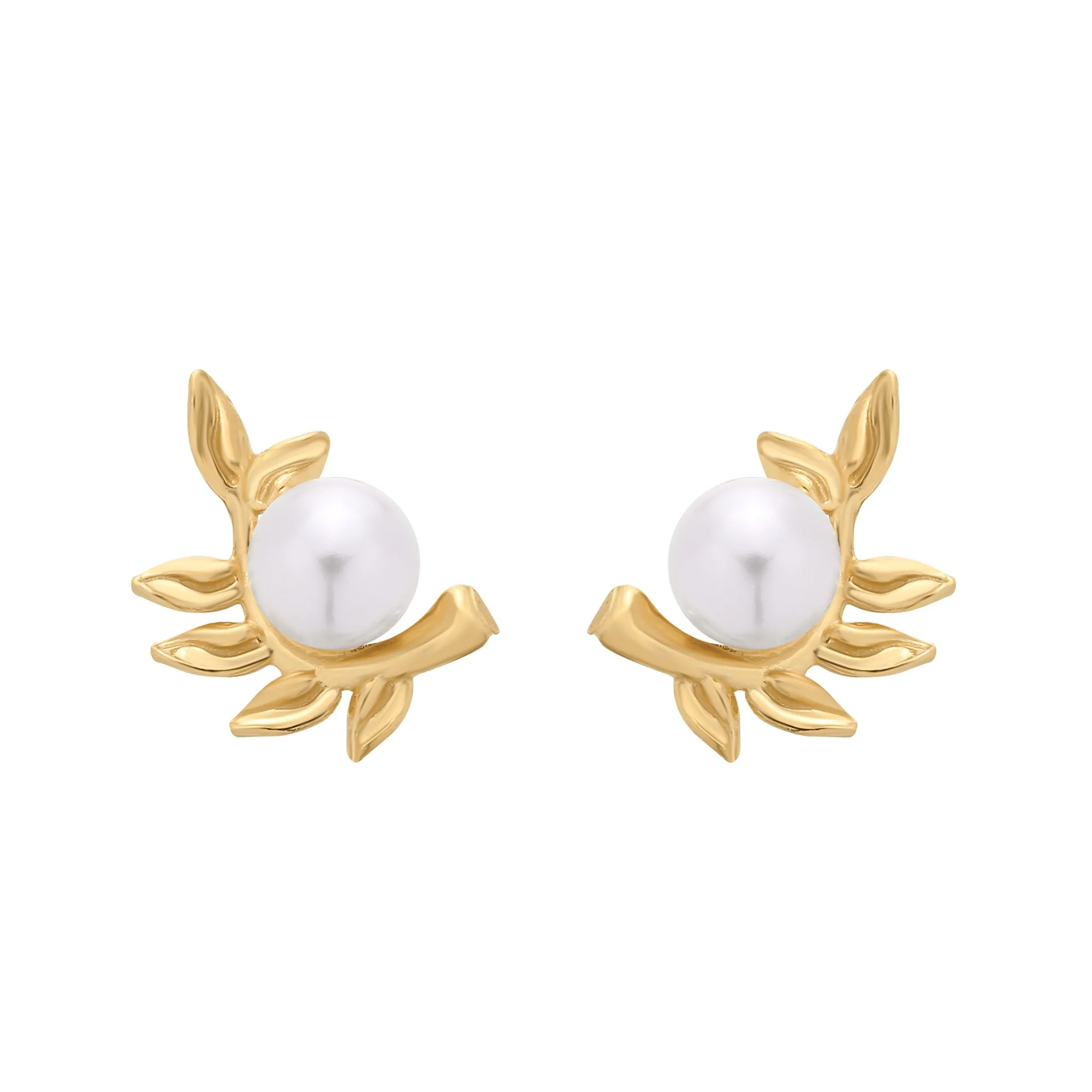 Złote kolczyki gałązki z perłami SWAROVSKI® CRYSTAL