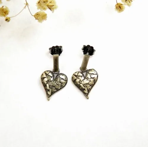 Kolczyki srebrne serduszka oksydowane na sztyftach II
