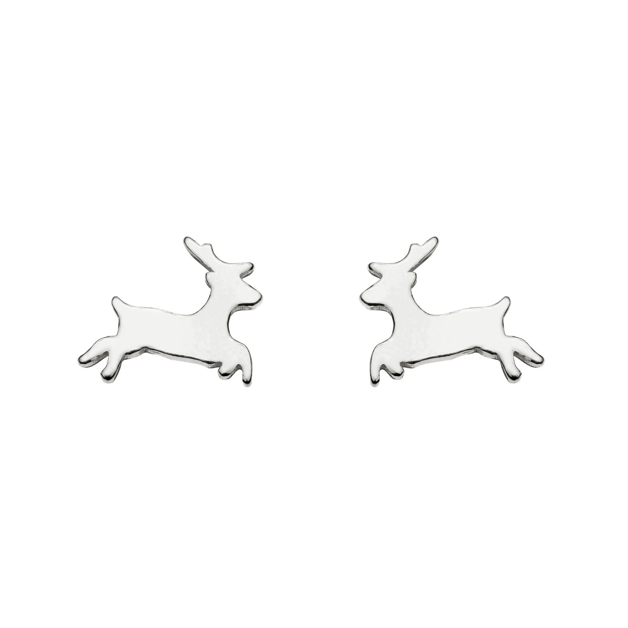 Złote kolczyki w kształcie jelonków. Zapinane na sztyft. Kolczyki posiadają zapięcia (baranki). Para posiada lewy i prawy kolczyk. Kolczyki w całości wykonane są ze srebra 925 powlekanego 24 karatowym różowym złotem.