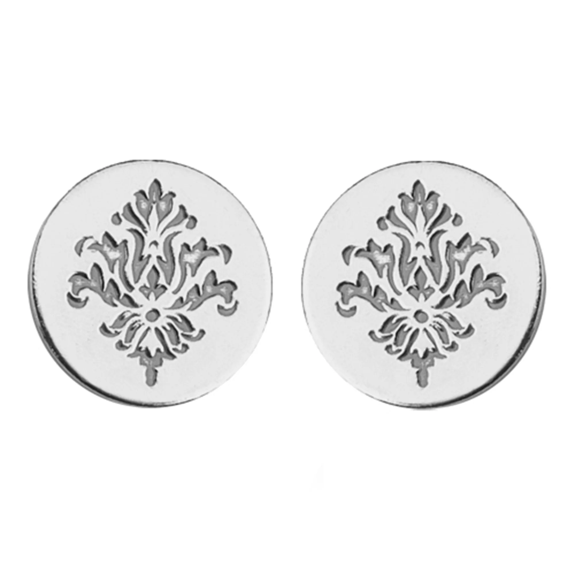 Złote kolczyki w kształcie kółeczek z rozetkami. Zapinane na sztyft. Kolczyki posiadają zapięcia (baranki). Kolczyki w całości wykonane są ze srebra 925 powlekanego 24 karatowym różowym złotem.