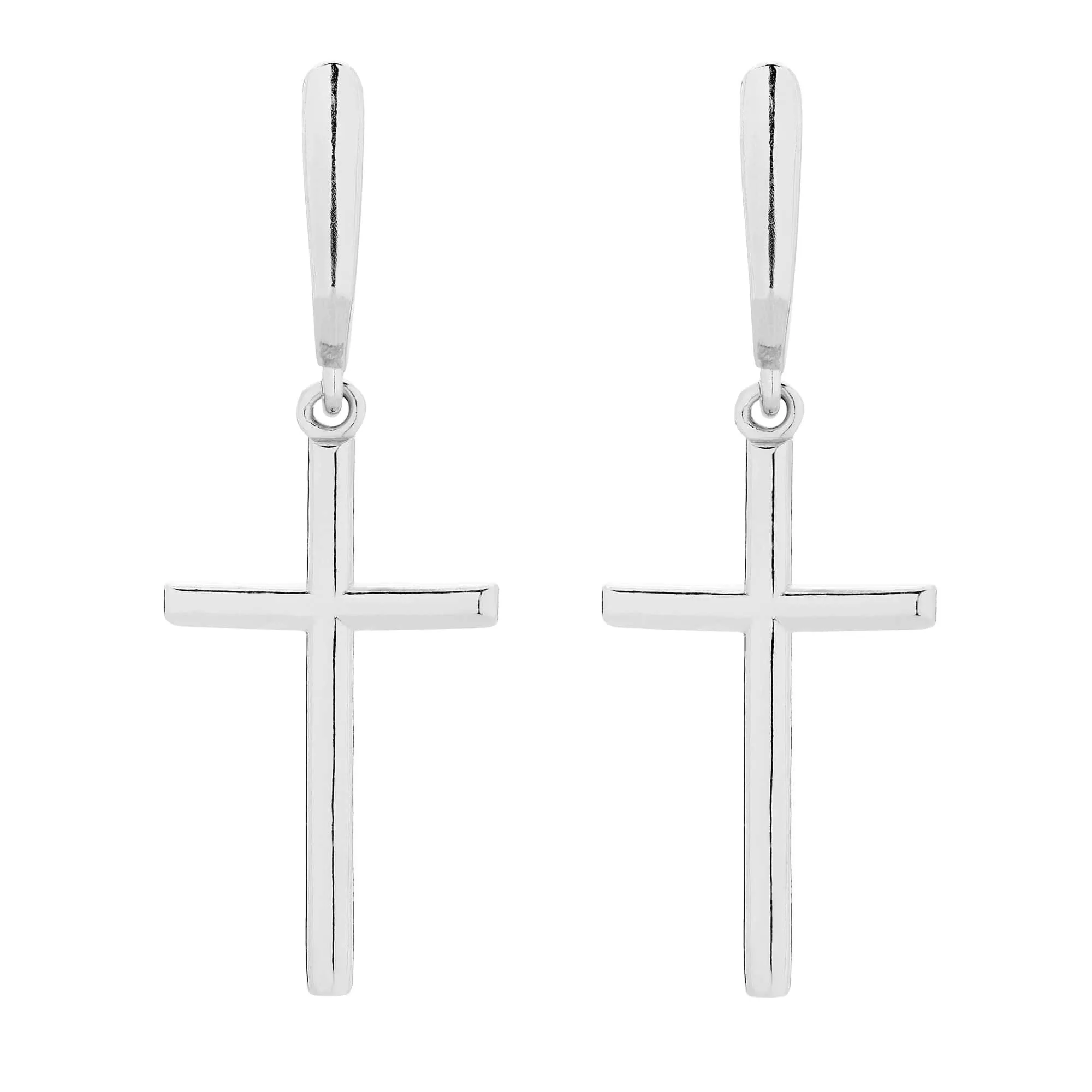 Złote kolczyki z krzyżami. Zapinane na angielskie bigle. Całość wykonana ze srebra 925 powlekanego 24 karatowym różowym złotem. Długość kolczyków 4,2 cm Krzyż 2,8 x 1,6 cm Zapakowane w eleganckie pudełeczko z logo marki. Produkt o wadze poniżej 5 g. Posiadają logowaną metkę. Istnieje możliwość zamówienia kolczyków w wersji ze srebra 925 lub srebra 925 powlekanego 24 karatowym żółtym złotem, z dodatkowymi zawieszkami, kamienieniami, perłami lub kryształami SWAROVSKI® CRYSTAL itp