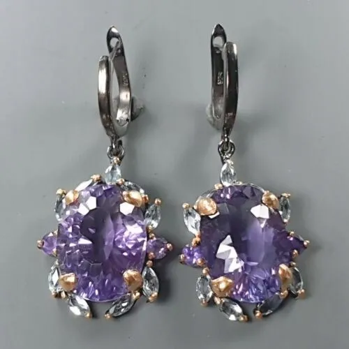 Srebrne kolczyki 28ct ametysty topazy certyfikat