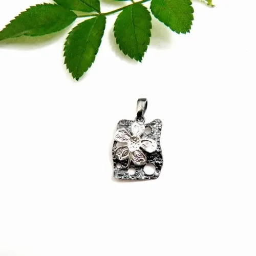 Wisiorek srebrny oksydowany - Księżycowy kwiat II mały czarno-biały