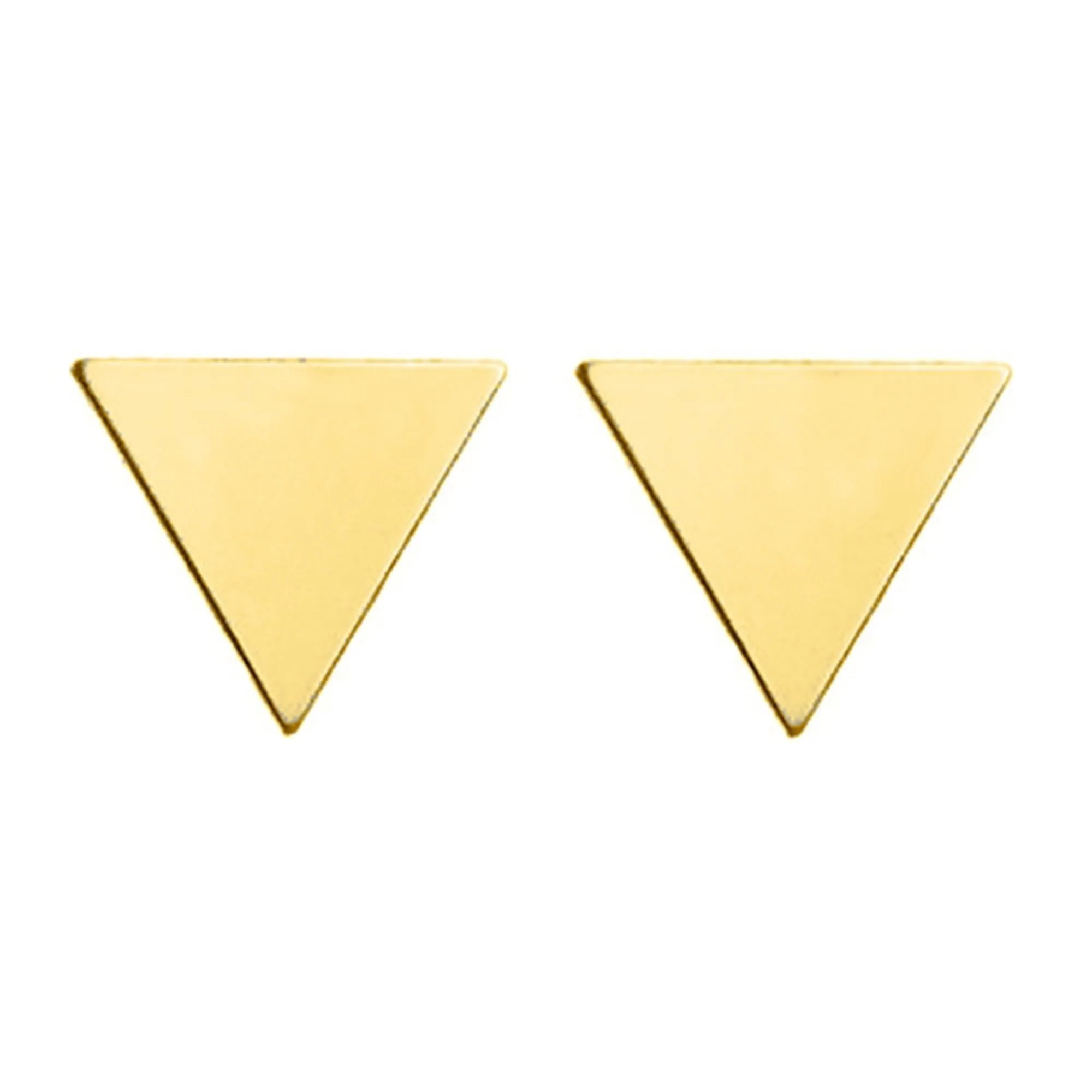 Złote kolczyki w kształcie pełnych trójkącików. Zapinane na sztyft. Kolczyki posiadają zapięcia (baranki). Kolczyki w całości wykonane są ze srebra 925 powlekanego 24 karatowym różowym złotem.