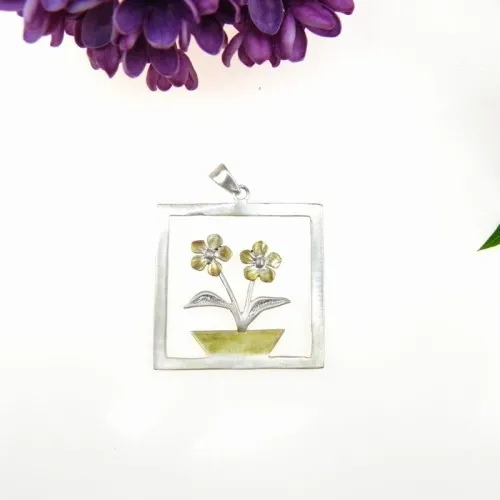 Zawieszka srebrna - Kwiaty w ramce jasne