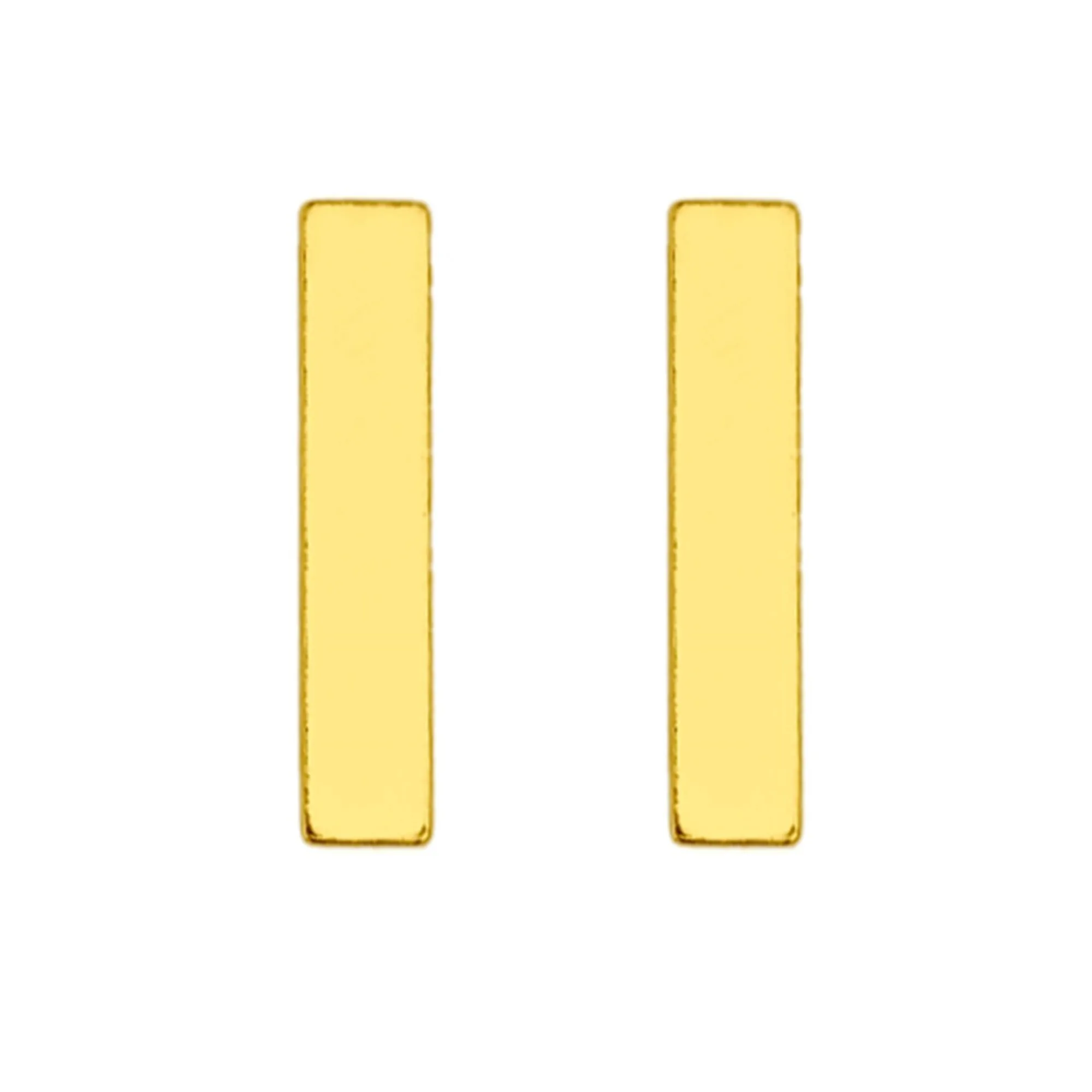 Złote kolczyki w kształcie prostokątów. Zapinane na sztyft. Kolczyki posiadają zapięcia (baranki). Kolczyki w całości wykonane są ze srebra 925 powlekanego 24 karatowym różowym złotem.