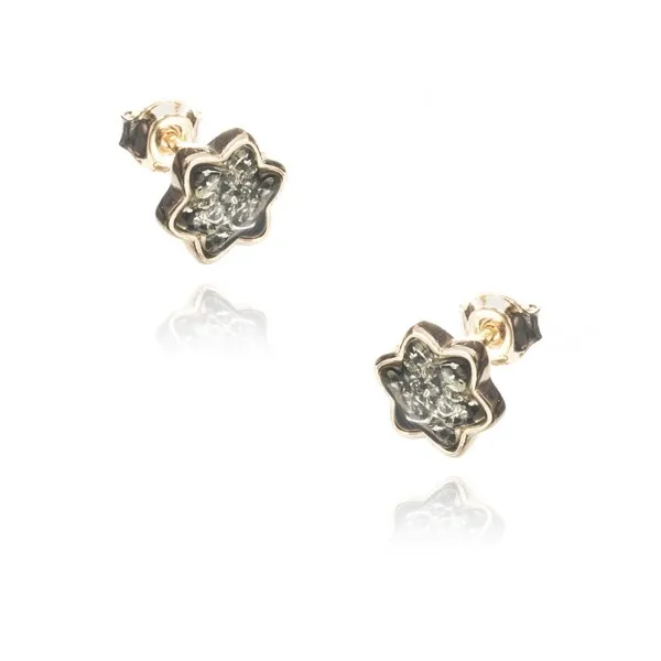 Kolczyki srebrne pozłacane z zielonym bursztynem gwiazdki