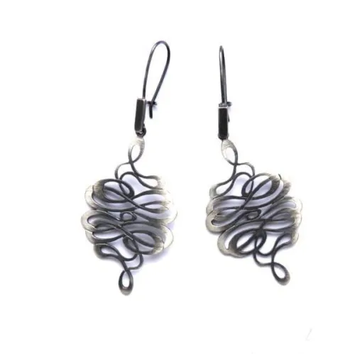 Wyjątkowej urody kolczyki 3 w 1 wykonane ze srebra, składające się z trzech elementów, z których każdy stanowić może samodzielną opcję kolczyków. Elementy łączone są malutkim kwiatuszkiem na sztyfcie. Całość wykończona oksydą szarą, sopelki zostały pozłocone.Długość kolczyków 3,8 cm, szerokość 4 cm.Waga: 10 gr.Prosta forma, elegancka i niezwykle stylowa. Nr katalogowy :S24KC