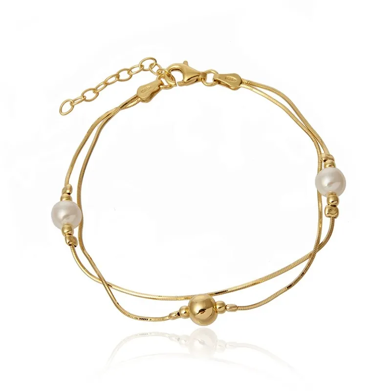 Bransoletka srebrna pozłacana z perełkami “luminara”