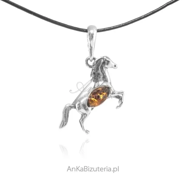Zaieszka srebrna z bursztynem koń w galopie