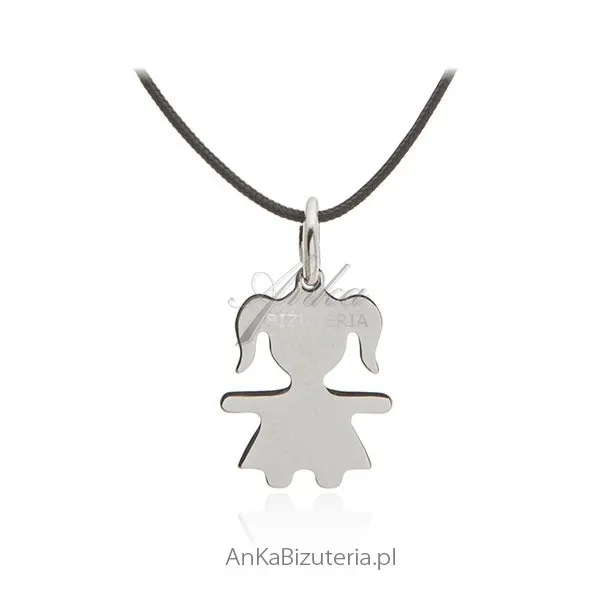 Naszyjnik srebrny choker na sznureczku - dziewczymka - biżuteria włoska