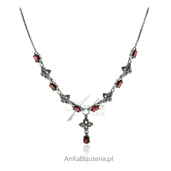Naszyjnik srebrny oksydowany granaty i markazyty