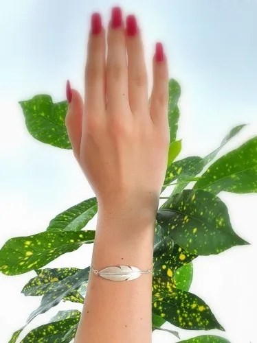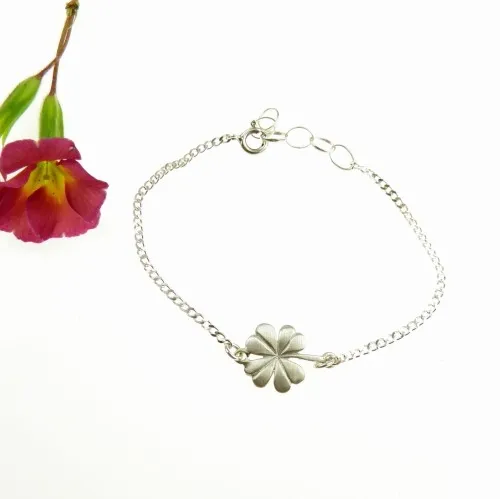 Koniczynka na łańcuszku biała - bransoletka srebrna
