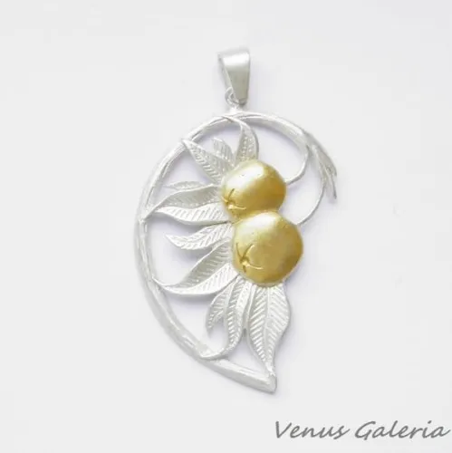 Zawieszka srebrna - Jarzębina złota w satynie III