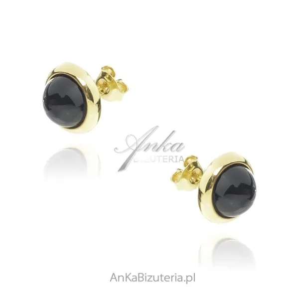 Kolczyki srebrne pozłacane z wiśniowym bursztynem okrągłe sztyfty