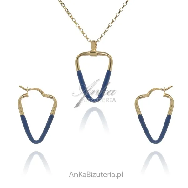Komplet biżuteria srebrna pozłacana z granatową emalią