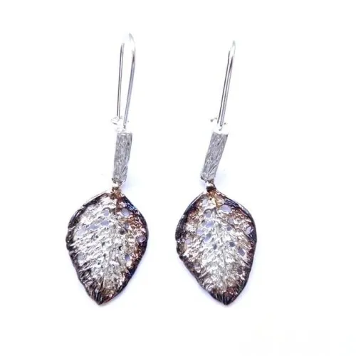 Kolczyki srebrne- Liść L9 podpalany na biglach