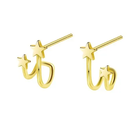 Kolczyki srebrne pozłącane podusznice gwiazdki