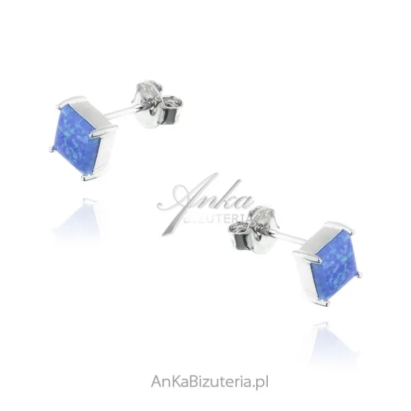 Kolczyki srebrne kwadraty z niebieskim opalem