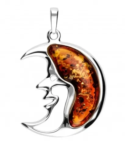 Piękna zawieszka srebrna z bursztynem wiśnia z łuską księżyc