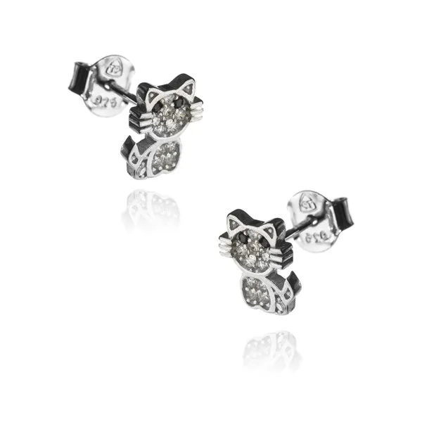 Kolczyki srebrne kotki z białymi cyrkoniami