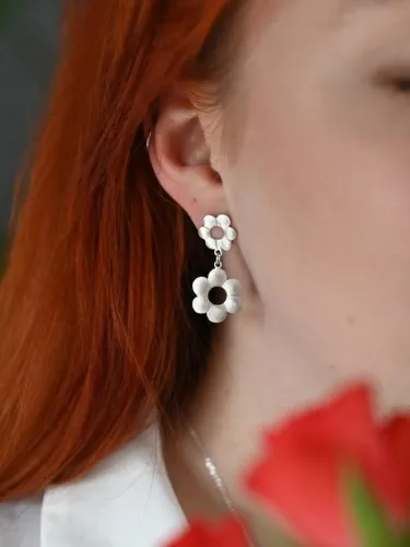 Kolczyki z dwoma sześciopłatkami jasnymi - Venus Galeria