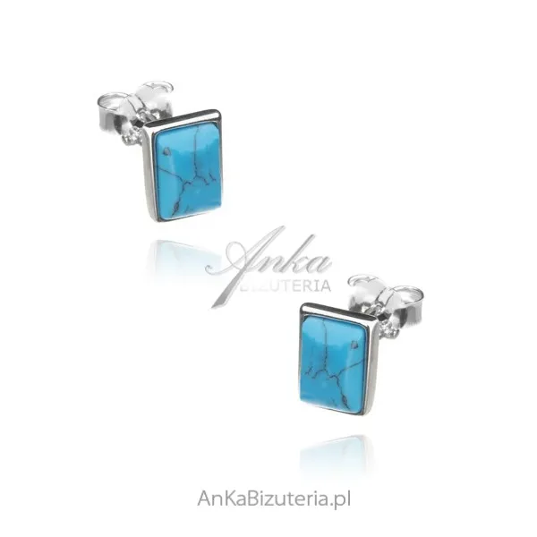 Kolczyki srebrne prostokąty z niebieskim turkusem