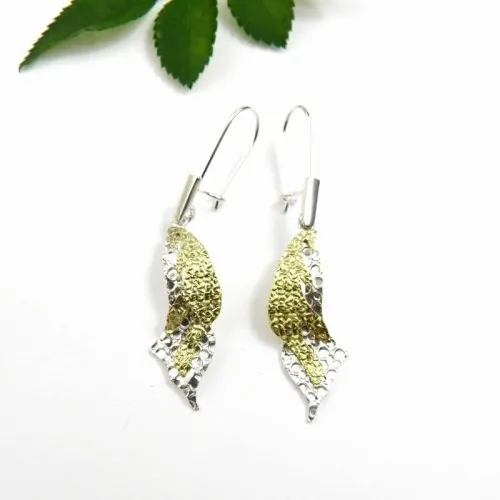 Kolczyki srebrne – Małe Satynowe Damy Retro | Styl lat 20-30-tych Wyjątkowe kolczyki srebrne Małe Damy Retro to subtelny hołd dla elegancji i szyku kobiet z lat 20-tych i 30-tych. Misternie wykonane z satynowanego srebra, z delikatną pozłoconą szarfą przy sukience, zachwycają detalem i niepowtarzalnym stylem retro. Te miniaturowe kolczyki są lekkie i wygodne – długość całkowita 4,2 cm, długość samej damy 2,6 cm, szerokość 0,6 cm, a waga zaledwie 2,4 g, dzięki czemu doskonale sprawdzą się zarówno na co dzień, jak i na wyjątkowe okazje. Szczegóły produktu: Materiał: Srebro próby 925 Wykończenie: Satynowane srebro z pozłoconą szarfą Długość kolczyków: 4,2 cm Długość samej damy: 2,6 cm Szerokość: 0,6 cm Waga: 2,4 g Dlaczego warto? Ręcznie wykonany, unikalny design inspirowany modą retro Delikatne, eleganckie i pełne uroku – idealne dla miłośniczek biżuterii vintage Doskonałe do stworzenia kompletu z bransoletką lub wisiorkiem Retro Idealny pomysł na prezent dla kobiety ceniącej subtelną elegancję Kolczyki Małe Satynowe Damy Retro to subtelna, a zarazem efektowna biżuteria, która podkreśla indywidualny styl i ponadczasową klasę.