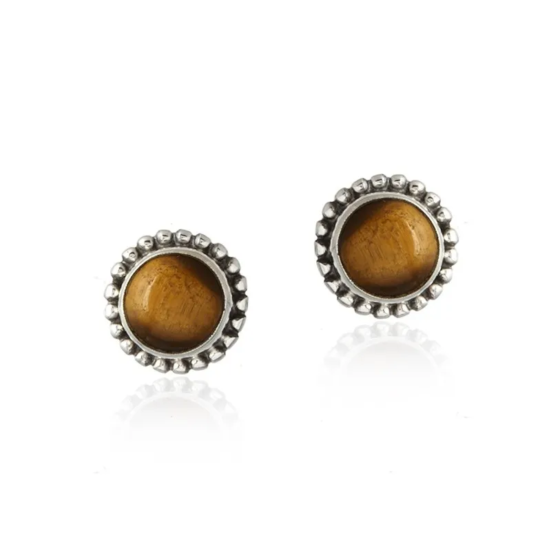 Kolczyki srebrne male wkrętki z tygrysim okiem