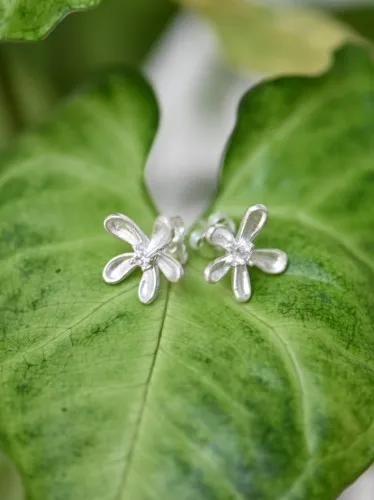 Kolczyki srebrne - Subtelne kwiatuszki białe na sztyftach