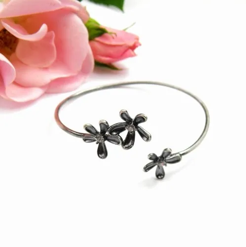 Bransoletka srebrna z trzema kwiatuszkami szarymi - Subtell III