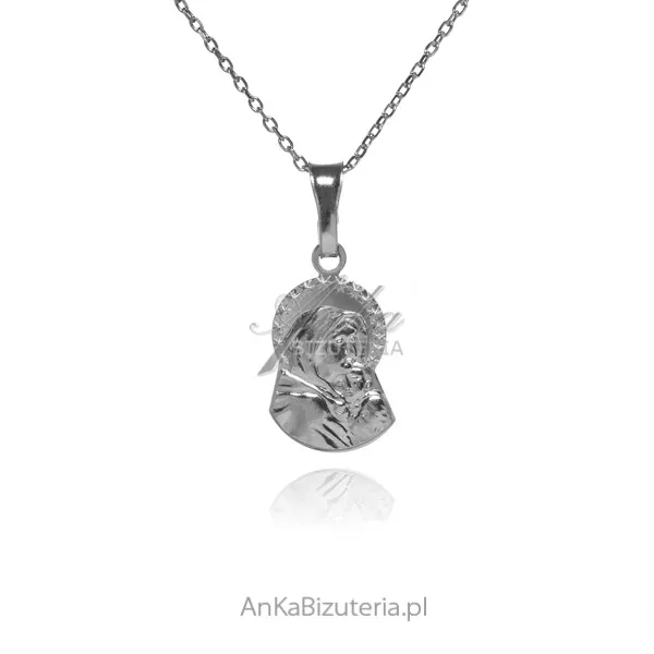 Dewocjonalia - matka boska z dzieciątkiem - medalik srebrny rodowany