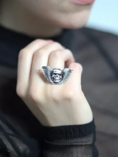 Pierścionek regulowany - Czaszka ze skrzydłami