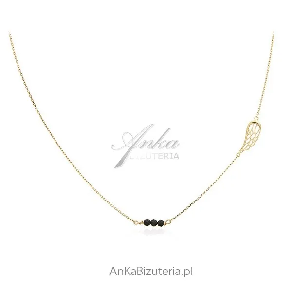 Naszyjnik srebrny pozłacany skrzydełko z czarnymi onyksami