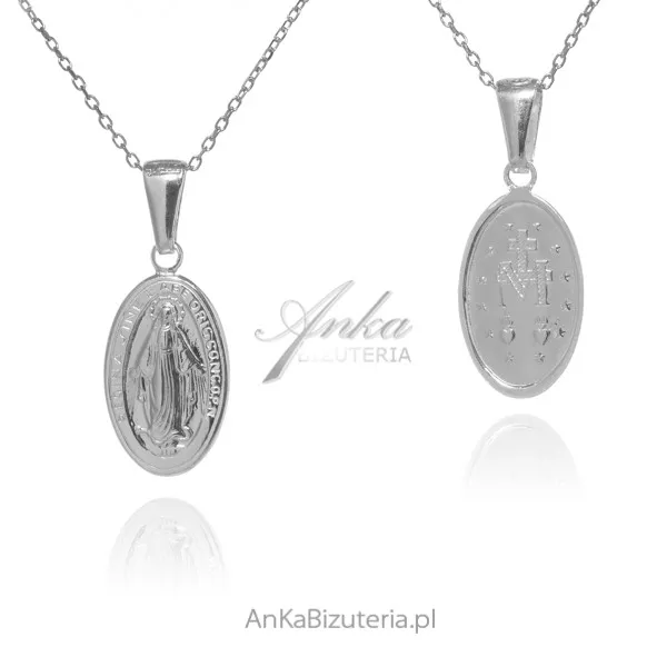 Srebrny medalik matka boska cudowna - rodowany średnia - medlik made in italy