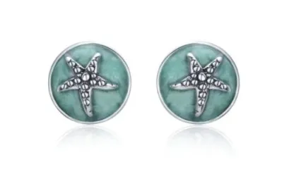 Kolczyki srebrne turkusowa emalia rozgwiazda