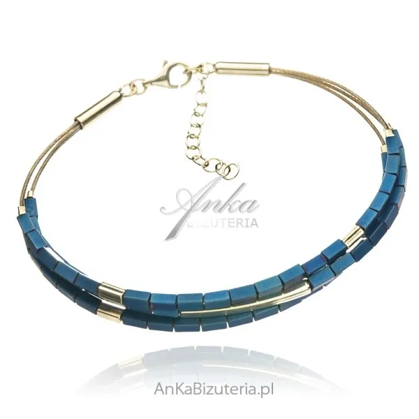 Bransoletka srebrna pozłacana z niebieskimi hematytami