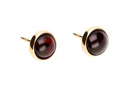 Kolczyki srebrne pozłacane 18-karatowym złotem z wiśniowym bursztynem