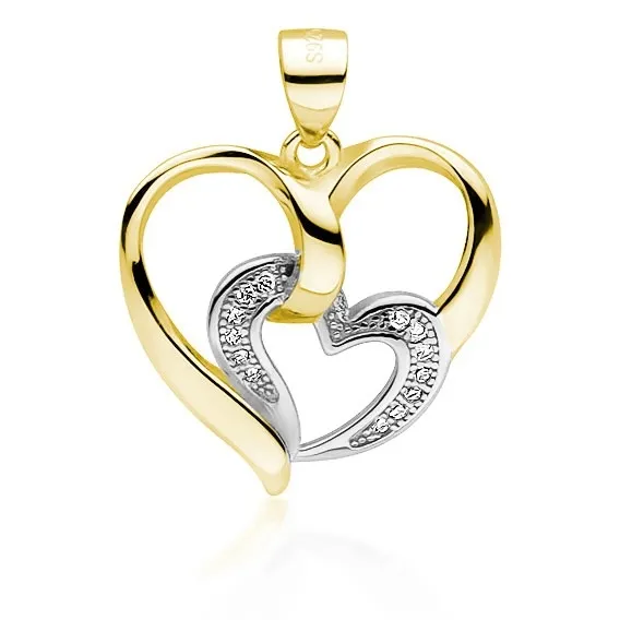 Srebrna zawieszka pozłacane serce z mniejszym sercem z cyrkoniami