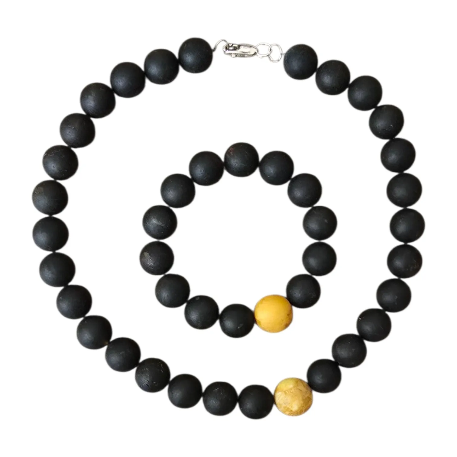 Komplet biżuteria z bursztynem bałtycki naszyjnik i bransoletka
