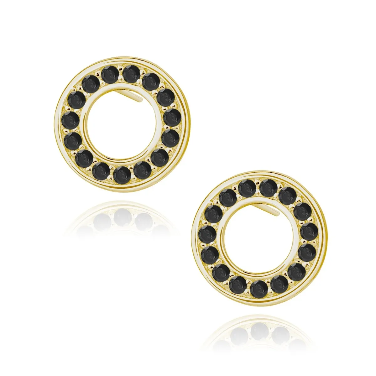 Kolczyki srebrne pozłacane kółeczka z czarnymi cyrkoniami