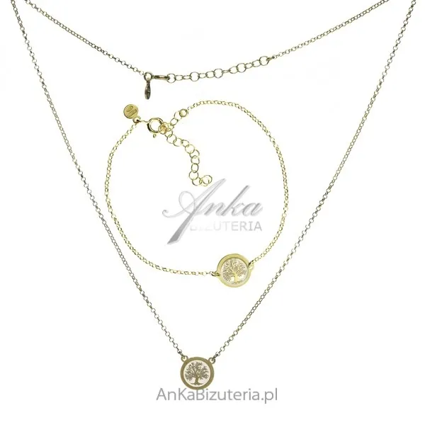 Srebrna biżuteria pozłacana drzewko szczęścia - komplet bransoletka oraz naszyjnik