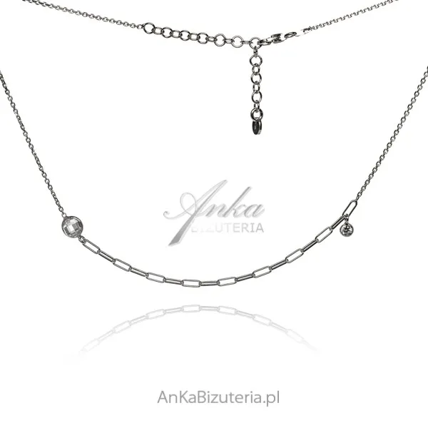 Naszyjnik srebrny z białą cyrkonią - połączenie modnego łańcuszka rolo fleat z ankierem