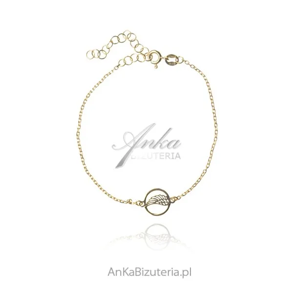 Bransoletka srebrna pozłacana ze skrzydełkiem w kółeczku