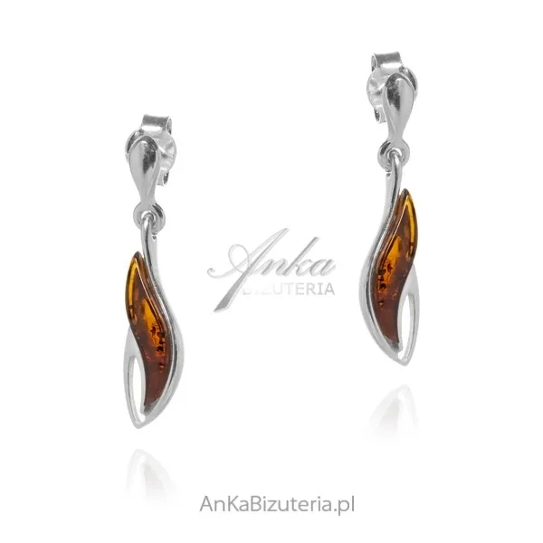 Biżuteria srebrna damska - subtelne kolczyki srebrne z bursztynem