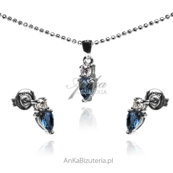 Komplet biżuteria srebrna z niebieską cyrkonią
