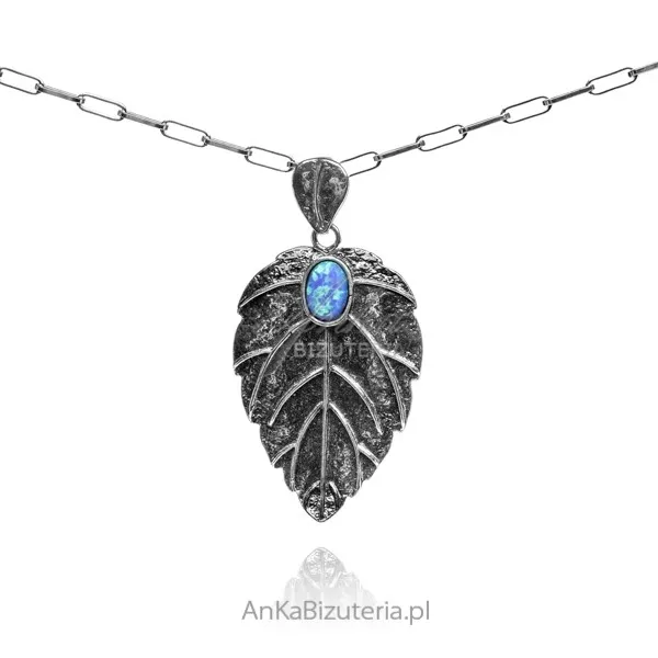 Zawieszka srebrna z niebieskim opalem oksydowana listek