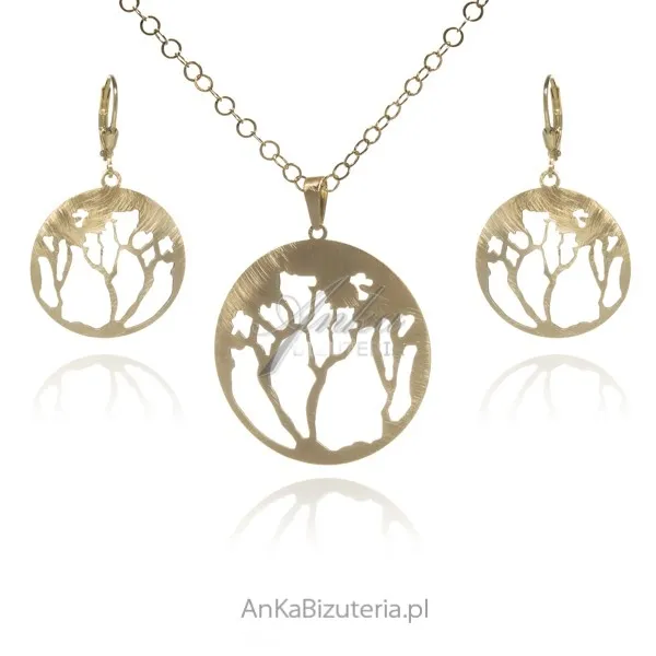 Komplet biżuteria srebrna pozłacana leśny zakątek